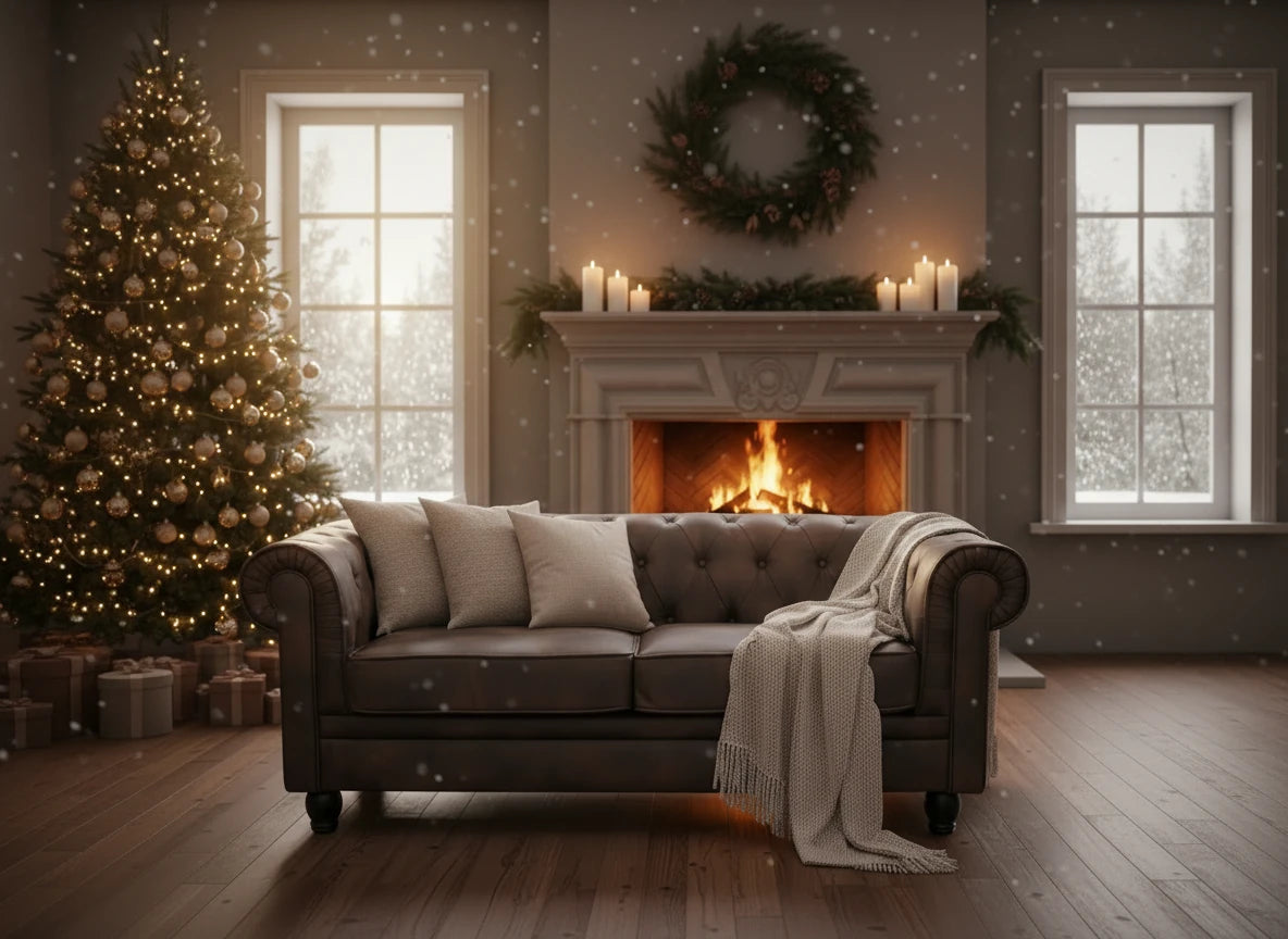 Trasforma il tuo giardino con lanterne LED per un’atmosfera calda, tavoli Ribot con tovaglie festive e pergole decorate con luci natalizie.