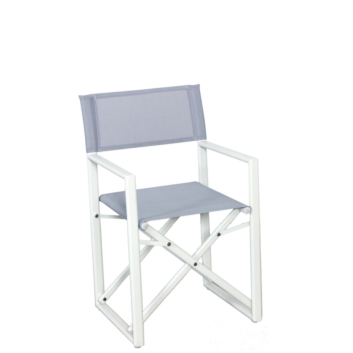 Sedia Regista Imola CHA46 in Alluminio e Textilene Grigio Cenere, classica, robusta e ripieghevole per giardino.
