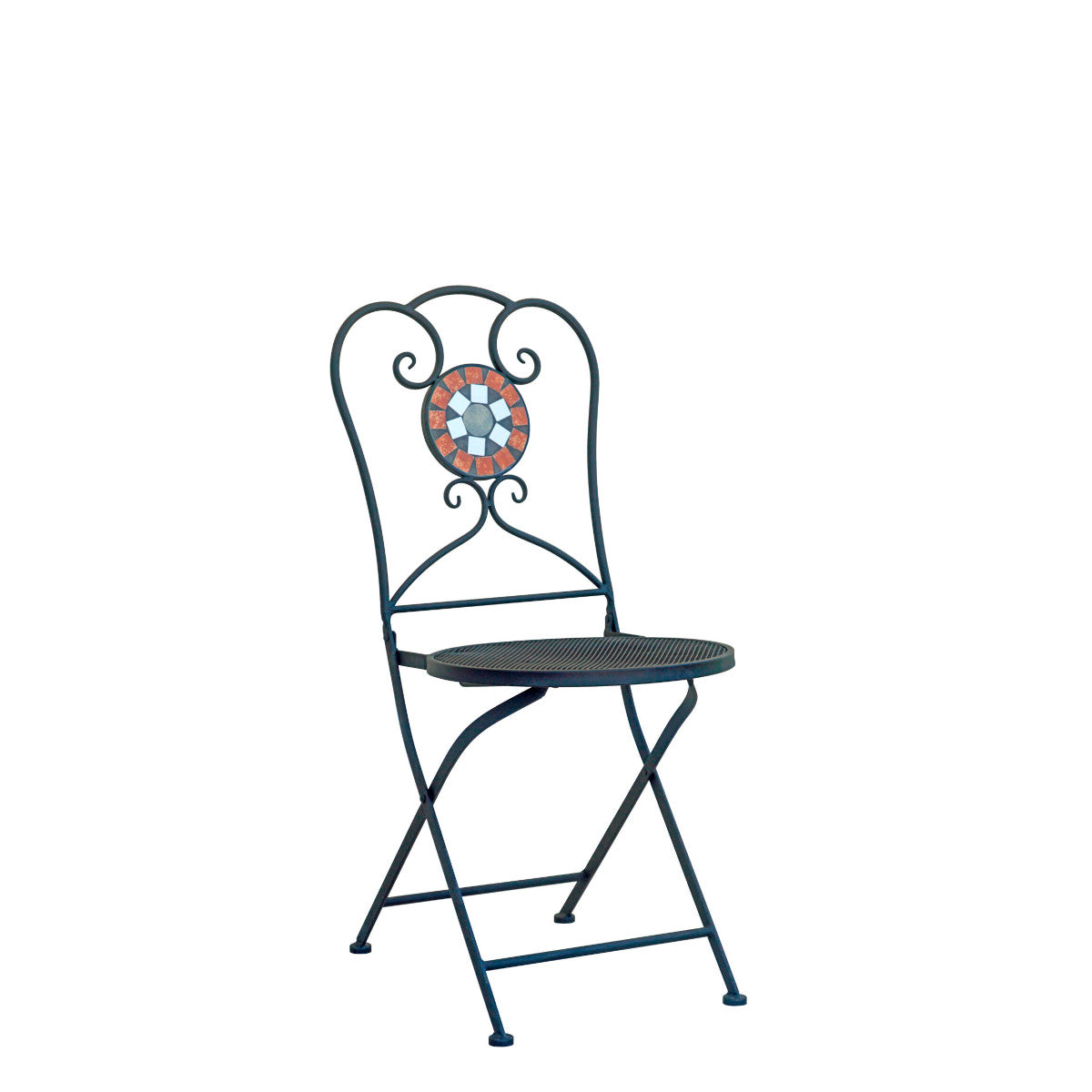 La struttura è realizzata in Ferro trattato con una verniciatura epossidica, la quale offre una protezione superiore contro la ruggine e gli agenti atmosferici, garantendo una resistenza eccezionale all'esterno. La seduta con Mosaico non è solo un elemento estetico raffinato, ma garantisce anche una facile pulizia. Nonostante la robustezza dei materiali, la sedia è pieghevole, permettendoti di riporla in modo compatto quando non in uso, coniugando così bellezza e praticità salvaspazio.