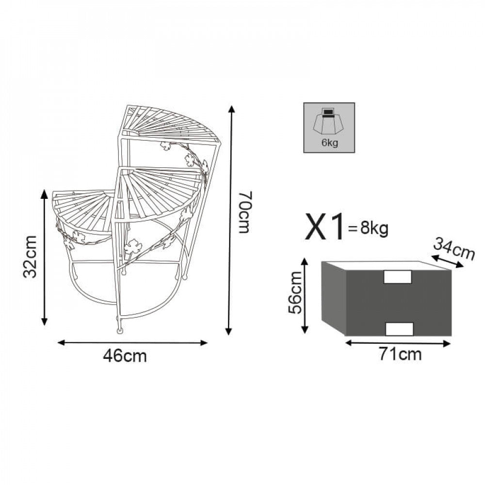 Dati Tecnici: Étagère in metallo a 3 piani verniciato a polvere con trattamento elettroforesi. Dimensioni: 46 x 32 x 57 cm.