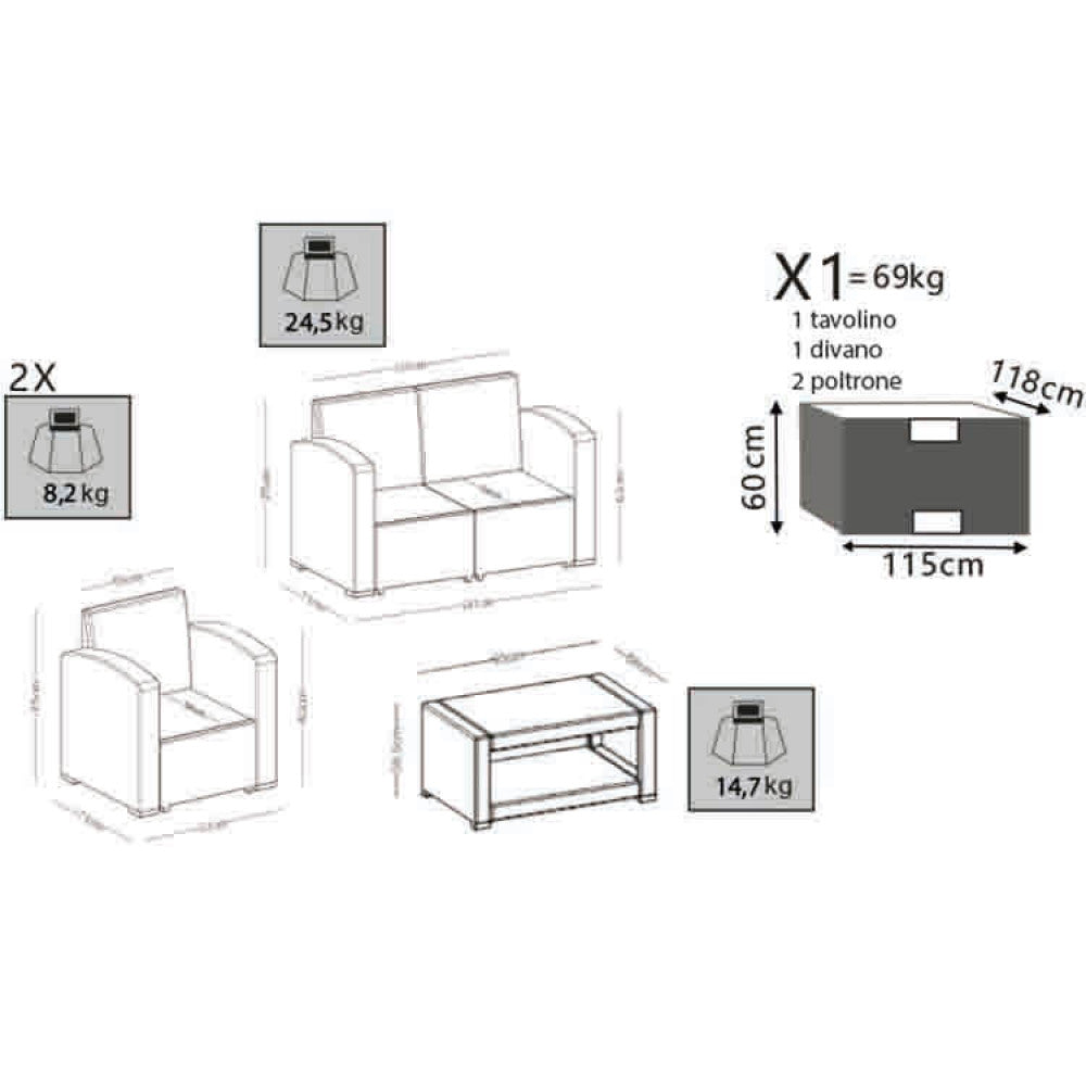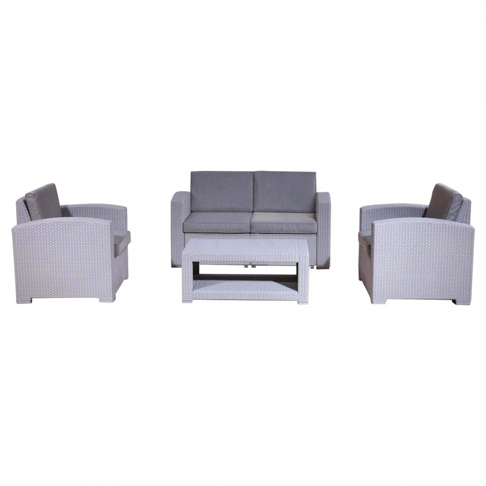 Struttura in plastica stampata, wicker BIANCO o GRIGIO materiale UV protection cuscini grigi spessore 8 cm Dimensioni: D.139,9x71x75/P.83x71x75/T.93x55,8x38,6