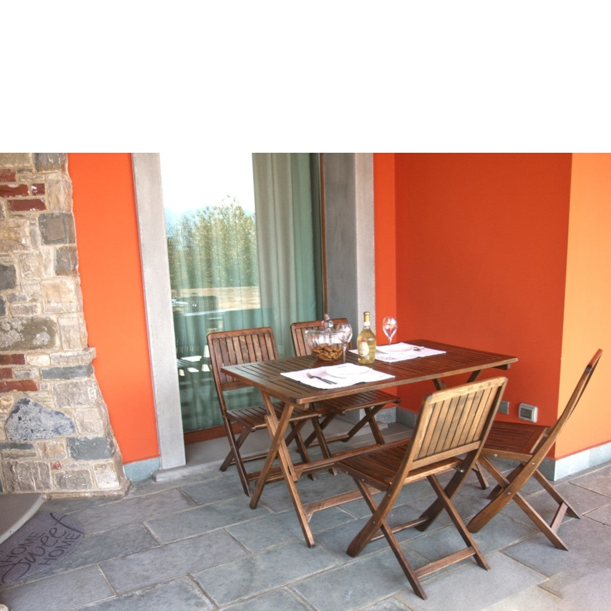 Il set Rodi è composto da un tavolo pieghevole e quattro sedie pieghevoli, realizzati in legno di carpino e verniciati a base acqua color noce lucido. Questo set è ideale per arredare spazi esterni con eleganza e funzionalità.